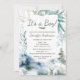 This baby shower invitation features pine trees, mountains, a deer and a rustic wood background. Designed with gold geometric accents, watercolor floral, forest scenes and modern fonts, this invitation is one of a kind. Created for a boy baby shower, this invitation is sure to impress your guests.