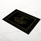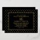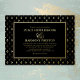 Welcome friends and family to take part in your wedding day celebrations with this modern wedding invitation. The horizontal layout provides extra space for long names. The Forever Charmed foil design features a 'reminisce and cherish' themed geometric pattern with a lattice of gold charm-style motifs on a black background and elegant gold text.