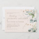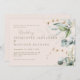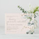 Simple Wedding Invitation. Blush/pink background. No parents. Image is meant to trail off the page. Gold text. White floral.