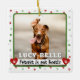 Keep your fur baby with you after they cross the rainbow bridge with this Forever in our Heart Remembrance Keepsake Ornament. Add a photo of your beloved dog in this sweet Christmas ornament gift. This unique design frames your canine friend in a photo with their name, paw prints, a heart and helps keep them forever in our hearts after your pet memorial.