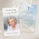 These personalized memorial prayer cards offer a gentle tribute to a life held close in heart and spirit. The design pairs a softly faded photo with elegant script typography on the front, while the reverse features a tranquil beach scene, an editable Christian prayer and a simple cross symbol representing faith, peace and eternal hope. Thoughtfully created for funerals, memorial services or Celebration of Life gatherings, these customizable prayer cards provide family and friends with a meaningful keepsake that honors love, remembrance and the promise of comfort beyond loss. Its small and portable size of 3.5x2" (wallet-sized) makes it convenient to carry as a reminder of their life and spirit. Personalization makes each card unique.
