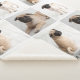 A beautiful and cosy personalised pet memorial blanket to honour the memory of a beloved furry family member. The modern and simple design includes a photo collage of nine (9) square-shaped photos with the name of your dog, their lifespan or year they passed away, heart design details, and a custom quote - the default quote is "Forever in our hearts". Neutral grey and black colours can be customised.