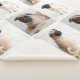 A beautiful and cosy personalised pet memorial blanket to honour the memory of a beloved furry family member. The modern and simple design includes a photo collage of nine (9) square-shaped photos with the name of your dog, their lifespan or year they passed away, heart design details, and a custom quote - the default quote is "Forever in our hearts". Neutral beige / tan and black colours can be customised.