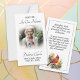 Personalised photo memorial cards funeral keepsakes. The front of this elegant and simple memorial card has, "Forever in our Hearts" with photo, name, birth date, date of passing. The back has a prayer you can personalise with a watercolor pictures of a cardinal.