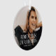 Transform your holiday décor with a unique and meaningful touch. Our memorial Christmas ornament allows you to personalise it with your own photo and name, creating a heartfelt tribute to your loved one. The design showcases a custom photograph, a dark overlay, and elegant white lettering that reads 'FOREVER IN OUR HEARTS'. Make this ornament a cherished memorial for years to come.