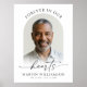 Forever In Our Hearts Photo Modern Script Memorial Welcome Poster Sign. Honor your loved one’s memory with this elegant photo poster sign, designed as a touching tribute for a funeral, memorial service, wake or Celebration of Life event. Featuring the heartfelt title Forever in Our Hearts in a modern handwritten script, this design beautifully accents your loved one’s photo in an arch shape along with their name and life dates in black on a white for a classic yet elegant style. OPTIONS: The sample is shown in a 18x24" size on Value Paper (Matte); other standard and custom print sizes and paper quality, Instant Digital Download file for printing locally or transferring the design to a foam board, banner, canvas or other product options are available on the ordering page. RESIZING TIP: Choose Custom Size for even borders by changing the height and width proportionately AFTER clicking the UNLOCK icon (looks like a chain link). ASSISTANCE: For help with design modification or personalization, color change, resizing or transferring the design, contact the designer BEFORE ORDERING via the Zazzle Chat MESSAGE tab or email makeitaboutyoustore@gmail.com.