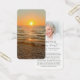 This serene memorial card honors a cherished life with a peaceful ocean sunset paired with a softly faded photo and elegant Forever in Our Hearts script typography. Gentle waves and warm light reflect comfort, gratitude and enduring love, creating a calm and meaningful tribute. Ideal for sharing at a funeral, memorial service or Celebration of Life, this keepsake offers family and friends a beautiful reminder of a life remembered and held close in the heart. Its small and portable size of 3.5x2" (wallet-sized) makes it convenient for loved ones to carry it with them as a reminder of your loved one’s life and spirit. Personalization makes each card unique.