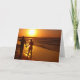 Silhouette of a loving newlywed couple on their honeymoon walking along the beach into the sunset, the rest of their lives. Matching cards, postcards, and postage stamps in three sizes available.
