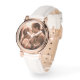 This beautiful watch has a pink gold face / frame and white band. Add your special photo and personalise with handwritten, script text along the bottom. Sample wording is, "Our love is forever", or change it. This feminine watch makes a lovely gift for a wife or girlfriend. Your photo will have a pinkish tinge because of the filter chosen. To change that, use the design tool. Choose the photo, on the design tool page, and then "filters". Change it to no filter. This is one of many wristwatch styles. The design is easy to swap to any other style.
