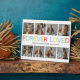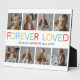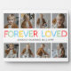 Cute picture plaque featuring a plain white background that can be changed to any colour, 8 square photos, colourful typography that reads "forever loved", and the childs name.