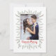 A perfect Christmas card to announcement your married. A vertical photo and handwriting style text "Forever Merry" appear inside an elegant winter greenery frame.