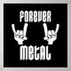 Two cartoonish stylised white hands making the rock and roll heavy metal devil horns gesture featuring the phrase Forever Metal in a bold gothic font. The design conveys a strong sense of affiliation with the heavy metal music genre. Great gift for heavy metal music fans. Awesome present for your metalhead friends. Tags: rock, metal, heavy metal, music, devil horns, devil, horns, metalhead, hard rock, rock and roll, typography, logo, gesture, hands, gothic, emblem, design, sign, symbol, band, cartoon