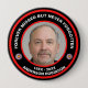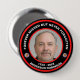 A tribute button for friends and family to wear at a funeral with a photograph of your loved one and the words "FOREVER MISSED BUT NEVER FORGOTTEN" framing the picture with their name and dates.
