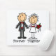 A stick figure bride and groom and text that reads "Forever Together" on wedding T-shirts, mugs, cards, stickers, tote bags, magnets, postage stamps, mousepads, hoodies, and other bride and groom apparel and gifts, perfect for the newlyweds to wear on their honeymoon and the weeks following the big day!