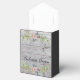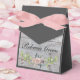 This wedding pattern features delicate floral borders on a rustic country barnboard background.  The romantic design is perfect for a spring or summer wedding, and the subtle use of flowers adds a touch of elegance to the overall look.