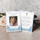 An elegant memorial photo funeral memorial prayer cards featuring symbolic blue forget-me-not flowers. You can customisze with your chosen prayer, psalm or poem. Elegant small blue flowers on simple white background. Makes great keepsake.