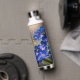The bottle looks even better in real life. The ice cubes I put in lasts all day! I have my bottle with me all the time. It's summer and having something cold to drink feels amazing. With this bottle I always have something super cold. I have only tried the hot drink once and it lasted a long time as well. The color blue is a navy blue and the white printed on it is vibrant. It printed perfectly. I love my personalized smile water bottle.