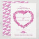 Pink and white hand-drawn ink and watercolor heart wedding invitations. Simple purple forget me not flowers with hints of yellow and green drawing and art in a heart shape wreath add your own event wording. Other matching items are available. © Original ink drawing and watercolor wash and design by Sarah Trett for www.mylittleedenweddings.com on Zazzle.