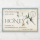Vintage design with parchment background with a blue border. Vintage blue forget me not flower and honeybee illustrations. Vintage 'postmark' updated with your honey description (i.e., raw - local - pure - unfiltered etc. ) honey collection date or "EST 2016" Add your location and contact info and honey net wt.