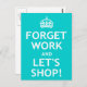 A humourous parody of the classic vintage Keep Calm and Carry On posters, especially for those who love shopping! Forget Work and Let's Shop!