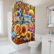 This colourful flower shower curtain says "Forgive Yourself!" on it.