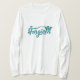 I love this shirt. I had written to the artist asking her if this picture was available on a shirt, and she wrote me back telling me where I could find the shirt. These shirts can be custom made to have a different saying. I loved this saying and went with it. The artist wrote me back later to tell me that she had seen my order go through. How's that for service? Pretty special. It's just as displayed. Perfect!