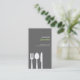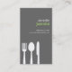Graphic illustration of fork, spoon and knife run off the edge of this unique business card. Perfect for restauranteurs, personal chefs, or food lovers. © 1201AM DESIGNS