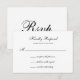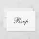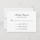 These elegant and modern wedding RSVP response cards feature a black and white with a classic layout and formal calligraphy. The back of the card is solid white with the word "Rsvp" in black calligraphy as a decorative element. This response card is perfect if you prefer to send a traditional, mail-in version to some or all of your guests.