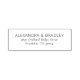 This elegant rubber stamp features a clean, minimalistic design with a focus on typography. The black text is set against a white background, creating a classic and formal look perfect for official communications or invitations. The layout includes customisable placeholders for names and addresses, allowing for personalised use. With its bold serif font and straightforward composition, this stamp conveys professionalism and clarity, making it ideal for personal or business correspondence.