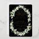 A black reception only wedding invitation, featuring hand painted snowberries and stems of eucalyptus arranged into a beautiful botanical frame. The text and scattered dots on the front of the card are foil pressed. All text is fully editable. . Please view this Collection in my store for invitations with alternative wording options, different colours and for coordinating items.