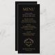 Enhance your wedding reception with this Formal Wedding Crest Monogram Custom black gold hue Menu. Featuring an elegant crest and monogram design, this menu adds a touch of sophistication to your special day. Personalise with your names and wedding details to create a memorable dining experience for your guests.