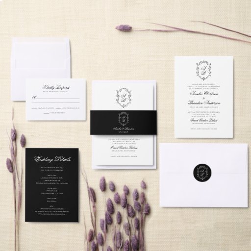 Elegant Black & White Floral Crest Wedding SuiteDesigned by Jessica Senarlo