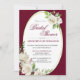 Antique white watercolor flowers with berries against a rich burgundy background with gold trim and a classy gold background on the back of this formal bridal shower invitation. The back of this formal burgundy red floral gold bridal shower invitation has a gold faux metal background with a beautiful gold oval adorned with classic white roses. Customise your text, font style, colour, and size or keep this popular design for your convenience.
