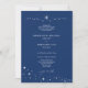 Invite your guests to a night of romance and starlight with this Formal Celestial Elegant Blue Wedding Details and Invitation from the Celestial Elegant Wedding Collection. Featuring a deep navy blue background adorned with twinkling stars and refined typography, this modern celestial design is perfect for couples who love a minimalist yet luxurious aesthetic. Easily personalise with your names, wedding date, and venue details for a fully customised touch. Ideal for celestial weddings, winter celebrations, or elegant evening receptions. Pair it with matching RSVP cards, programs, menus, and signage for a cohesive wedding suite.