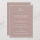 This formal wedding menu card features an elegant script heading, clean serif typography, and a classic border on a mauve background for a timeless reception look. The structured layout presents each course clearly while adding a refined, cohesive touch to table settings or place settings. Designed to coordinate seamlessly with classic and black-tie wedding stationery, it elevates the overall tablescape without feeling busy. Ideal for couples who want reception details that feel polished, organized, and enduring.
