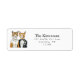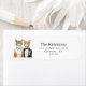 This customisable typography and script return address label design features an anthropomorphic chic and whimsical formally dressed cat bride and groom couple .