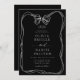 Announce your special event with a formal and elegant black and white bow monogram QR code invitation. Featuring a timeless monochrome colour palette, this sophisticated design highlights a stylish bow motif and personalised monogram, perfect for setting an upscale tone. The addition of a convenient QR code allows guests to easily access event details, making it both functional and chic. Ideal for weddings, galas, or formal occasions, this invitation blends classic elegance with modern convenience, creating a memorable impression.