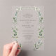 Elevate your wedding with the Formal Elegant Botanical Wedding Acrylic Invitations design, a timeless fusion of a verdant watercolor floral garden and refined sophistication. This modern classic design features delicate botanical elements of intertwined lush eucalyptus and graceful white florals, evoking the romance of nature in every season—spring, summer, fall, or winter.