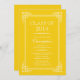 Beautiful classic modern graduation party invitation, graduation announcement featuring a fancy white frame set on a yellow gold background for a formal and elegant look. Perfect grad invitation for a girl graduate or boy graduate graduation from high school or college. Available in our shop in a large variety of popular school colours. Custom colour orders are always welcomed.