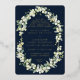 Hand painted snowberries and stems of eucalyptus arranged into a beautiful botanical frame against a dark navy background. The text and scattered dots on the front of the card are foil pressed. All text is fully editable. Please view this Collection in my store for invitations with alternative wording options, different colours and for coordinating items.