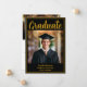 This sophisticated gold and black graduation announcement card features elegant cursive script above your formal graduate photograph. Personalise this commemorative Class of 2025 graduate photo card with chic serif typography for formal high school or college graduation announcements.