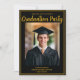 This sophisticated gold and black graduation party invitation features elegant cursive script above your formal graduate photograph. Personalise this commemorative Class of 2025 graduate photo invite with chic serif typography for formal high school or college graduation.