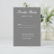 Featuring a chic grey and white colour scheme, this wedding response card adds a touch of sophistication to your wedding stationery. Its clean lines and understated design provide a perfect complement to a modern or classic wedding theme. Ample space is included for your guests to RSVP, combining elegance with convenience. Personalise it to reflect your unique wedding style and create a lasting connection with your guests.