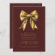 Formal Holiday Dinner Party Gold Satin Bow Marsala Invitation