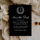 Formal Leafy Crest Monogram Black White Wedding Save The Date