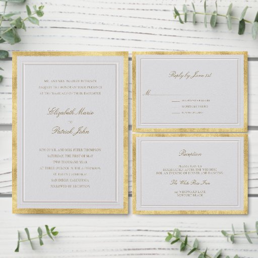 Formal Modern Classic Elevated Gold Ivory Wedding Invitation