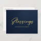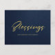 FORMAL NAVY GOLD MINIMAL CALLIGRAPHY BLESSINGS HOLIDAY POSTCARD