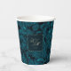 Elegant wedding paper cup in a formal style featuring a classic layout of gold frame and text with an ornate paisley background in shimmering teal. Add your initials in this beautiful script font and wedding date in a classic serif with it's traditional appeal. Search ID767 to see other color choices for this design.
