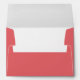 This wedding envelope features a minimalist design with a solid coral background and centred text in a clean, modern sans-serif font. The layout is simple and elegant, utilising ample negative space to highlight the names and address printed on it. The monochromatic colour scheme and straightforward typography create a sophisticated and formal tone, perfect for conveying essential information with clarity and style. Ideal for couples seeking a contemporary and unembellished look for their wedding stationery.