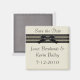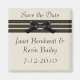 Elegant save the date magnet in soft beige with a black striped ribbon and black bow going across. Customise with your information as a lovely way to announce your upcoming marriage.